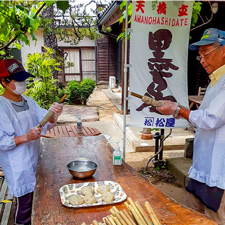 体験場所の松屋本店は、傘松公園のケーブル乗り場が歩いてすぐのところにあるので、体験終了後は傘松公園から天橋立を眺めて頂くこともできます。